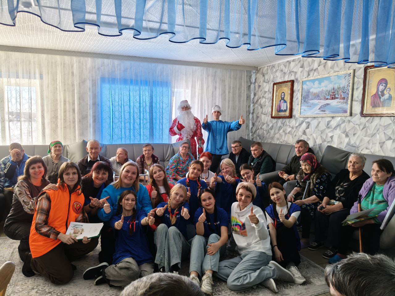 И снова состоялась долгожданная встреча с бабушками и дедушками в Панкрушихинском доме-интернате малой вместимости для престарелых и инвалидов. Здесь нашу большую компанию всегда ждут с огромным волнением и радостью, приветствуют искренними улыбками и теплыми словами. Встреча была направлена на создание праздничной атмосферы и проведение радостного события для обитателей Панкрушихинского дома-интерната малой вместимости. Организация встречи с участием известных героев и исполнением зимних песен и стихов способствовала созданию теплой семейной обстановки, возвращению воспоминаний детства и улучшению эмоционального состояния пожилых людей.