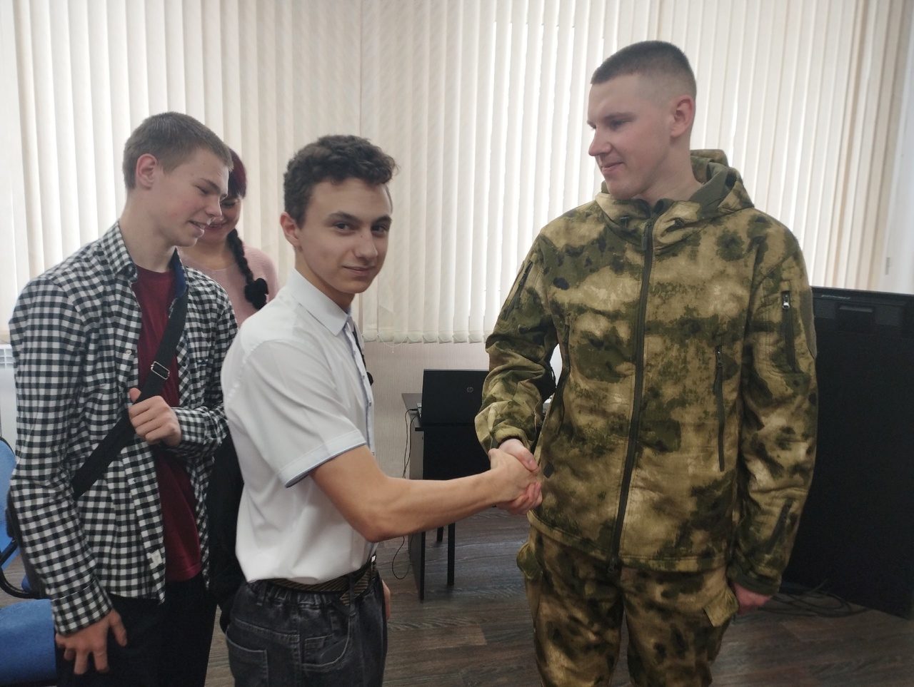 Встреча со студентами колледжа прошла интересно. Были продемонстрированы видеофрагменты из зоны СВО, об условиях, в которых воюют ребята, защищая свою Родину. Таких ребят сейчас много на передовой, и каждый из них ежедневно рискует жизнью, совершает подвиги, на деле доказывая преданность Родине.